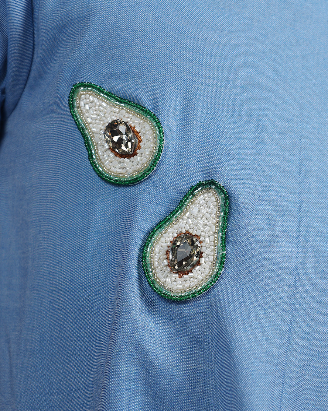 -Accented with a cute avocado hand embroidery patch for a fun twist