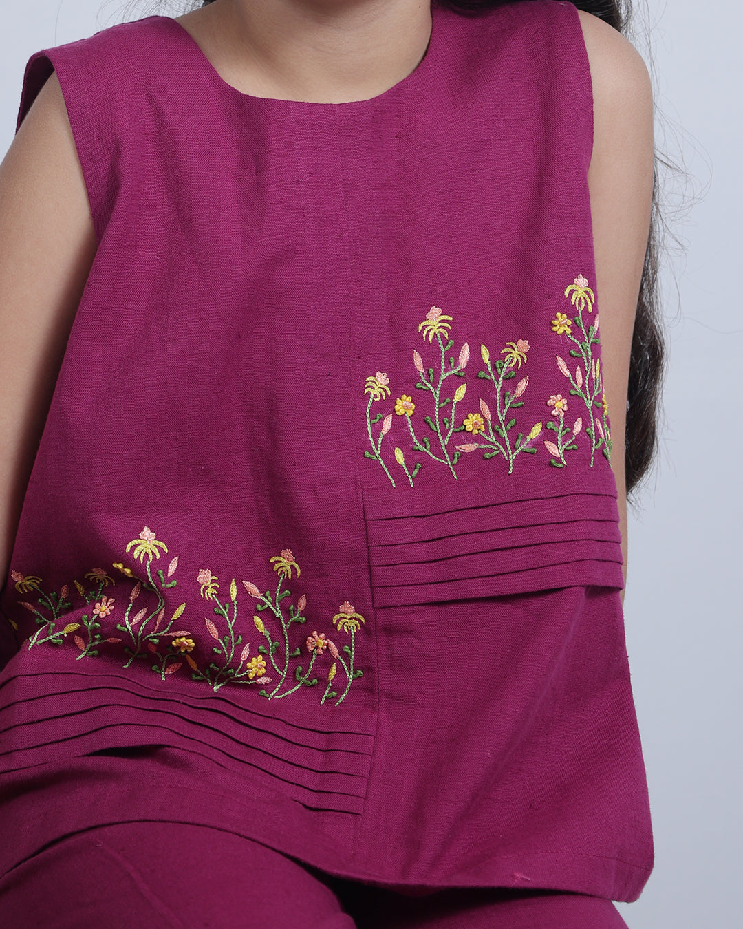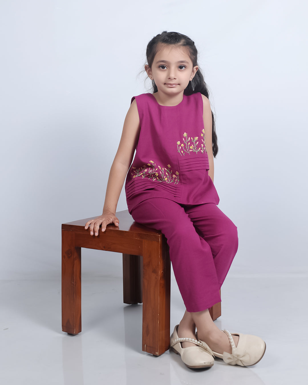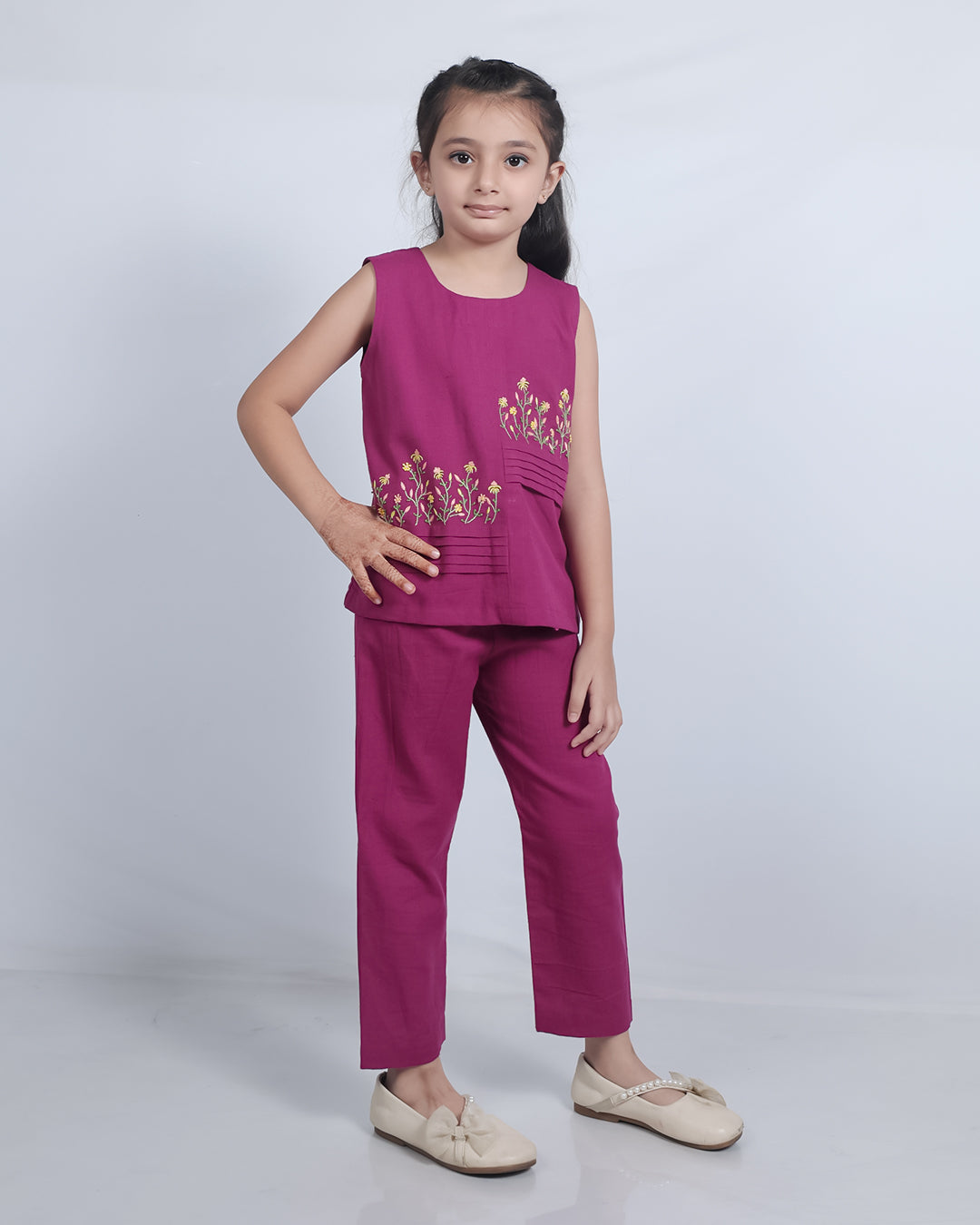 HAND EMBROIDERED MAGENTA CO-ORD SET