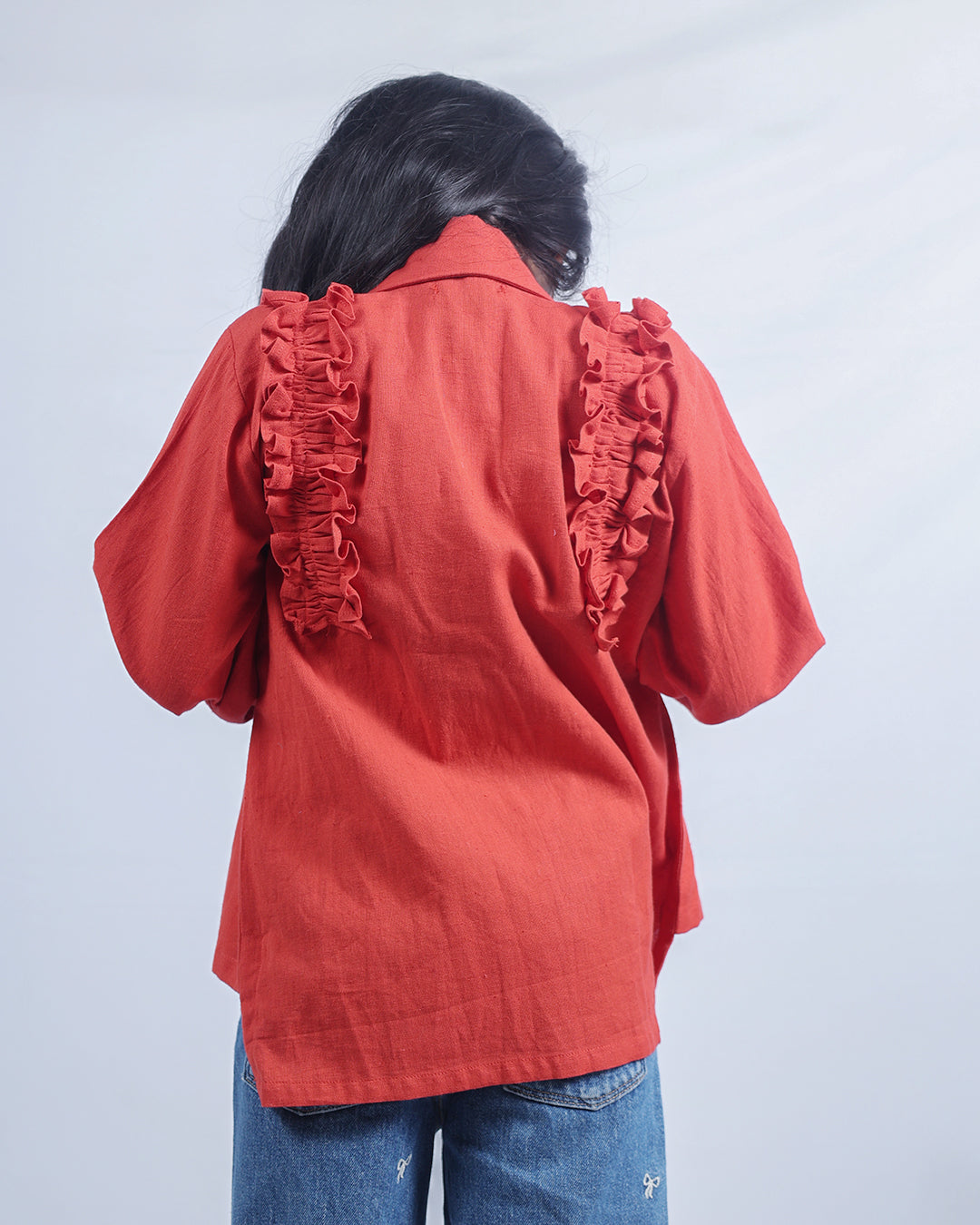 RUST RUFFLE SHIRT